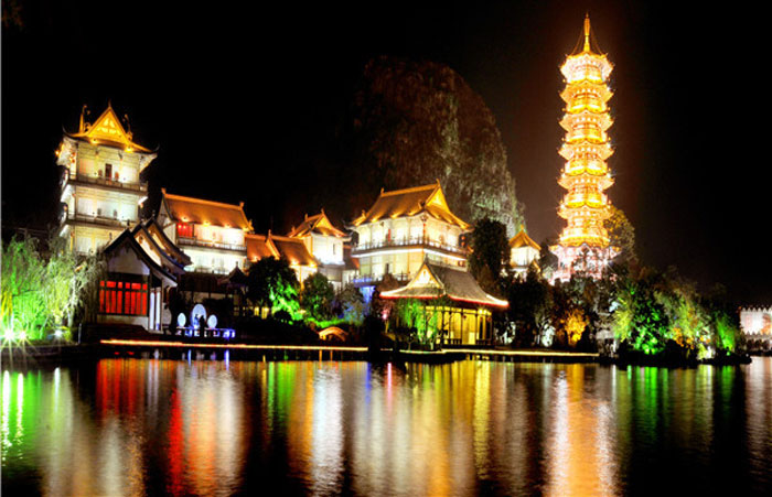 两江四湖汇集十九座形态各异、造型优美的桥梁,可谓世界名桥博览园。乘船夜游不仅可身临其境地感受华灯璀璨、山水摇曳的桂林夜景,还可体验水上电梯上上下下的快感,更有桂湖渔火、水晶乐坊、漓水瑶浴、铜鼓笙歌四大民俗演艺节目,好似一场美轮美奂的声色盛宴。穿行在这山环水饶间令人领略人与自然和谐相处、城市与山水的完美结合,体会世人“愿做桂林人,不愿做神仙”的感叹。