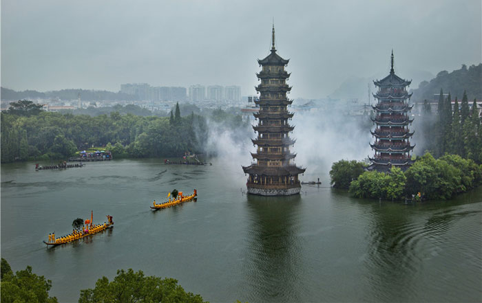 古人云“桂林山水甲天下”,两江四湖以宋代桂林环城水系为蓝本,集桂林城中秀美的自然山水、悠远的历史文化、古朴的民俗演艺和丰富的现代声光科技于一体,春夏秋冬各具特色,日游夜游美不胜收。作为桂林城市中心的经典环游线路,两江四湖尽显青山碧水之风韵、历史文化之底蕴,真实地体现了“千峰环野立,一水抱城流”的美妙景致和“城在景中,景在城中”的和谐景观。