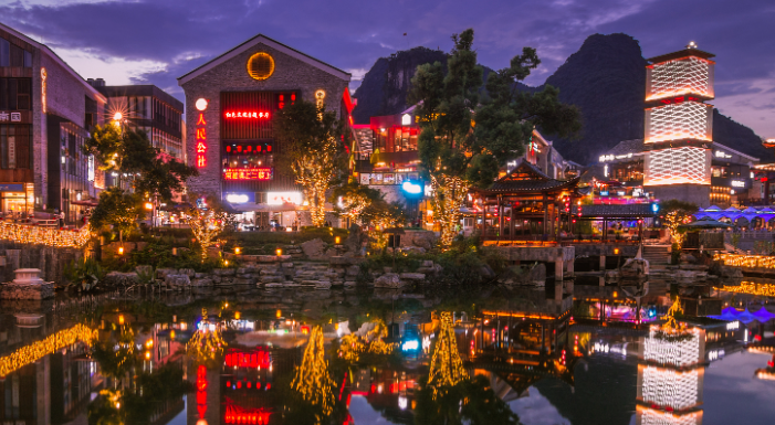 晚上:您可自由漫步在没有国度、充满热情的【洋人街——阳朔西街】感受浓郁的异国风情。