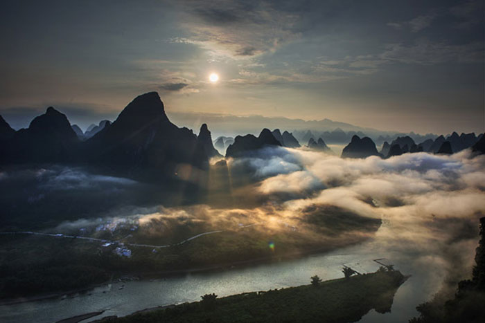 相公山位于阳朔兴坪镇境内的漓江西岸,在黄布滩和九马画山两景点之间,距阳朔约28公里。登上相公山举目远眺,群峰排列有序,清澈的漓江蜿蜒流淌在群山怀抱中。这里的光影、云海、日出、彩霞吸引了无数的摄影家和摄影爱好者,桂林摄影家在此拍摄的作品曾获第10届国际影展铜奖。