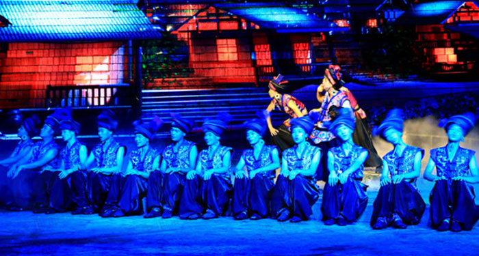 由中国侗城景区倾力打造的大型侗族风情实景演出《坐妹》,呈现侗族行歌坐夜、出嫁婚庆的神秘风情,并且展现芦笙、木叶、牛腿琴、琵琶的魅力,展示侗族服饰、芦笙踩堂、多耶舞的美轮美奂,演绎侗族大歌、木叶歌、多耶的天籁之音。整台节目充满乡野气息、田园风味,体现民族性、艺术性、观赏性的高度统一。