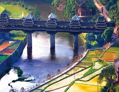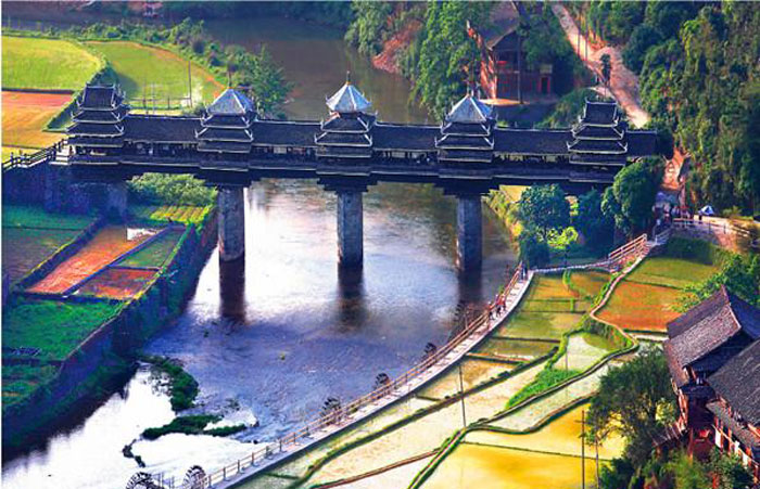 程阳桥景区位于三江侗族自治县林溪乡的林溪河畔,是三江县境内至大的旅游景区,也是著名的民族风情旅游景区。2009年被授予国家AAAA级景区称号。程阳桥景区由程阳永济桥、程阳八寨景观村落构成。程阳八寨景观村落由马安寨、平坦寨、平寨、岩寨、东寨、大寨、平甫寨、吉昌寨八个侗寨组成,俗称“程阳八寨”。程阳永济桥景点就坐落在程阳八寨旁的林溪河上。