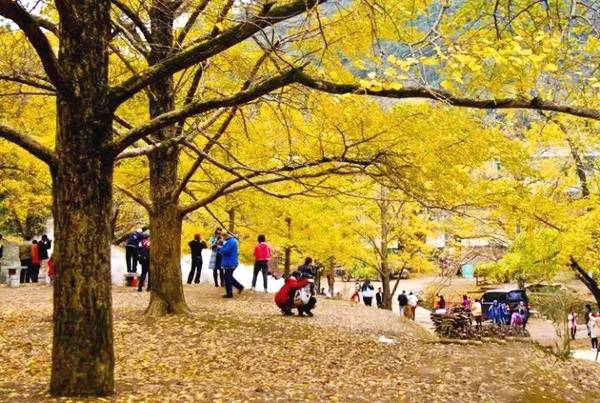 这么一个本不知名的小镇,因为世界罕有的银杏在这里汇成海洋而引来蜂涌的人群,于是安静的村庄开始变喧闹起来。