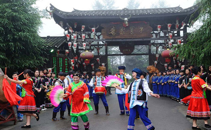 土家历史源远流长,民族文化博大精深,尤其是民间文化艺术深受广大游客喜爱时,连说寨子就是土家农耕文化复活向游客现场演示的传承平台,评价张家界探索了保护与发展的新路子。