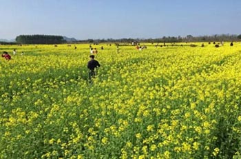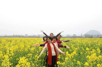 途中经过桂林龙门大桥时,成片的油菜花吸引我们了。我们下车照相留恋。