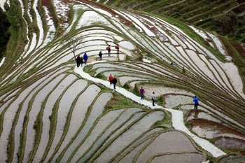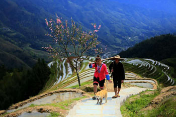 后前往 “金坑大赛。游览世界梯田之冠【龙脊梯田】—(含上下缆车),在桂林龙胜县东南部和平乡境内,有一个规模宏大的梯田群,如链似带,从山脚盘绕到山顶,小山如螺,大山似塔,层层叠叠,高低错落。梯田最高海拔880米,最低380米,垂直落差500米。它的线条如行云流水,潇洒流畅;它的规模磅礴壮观。