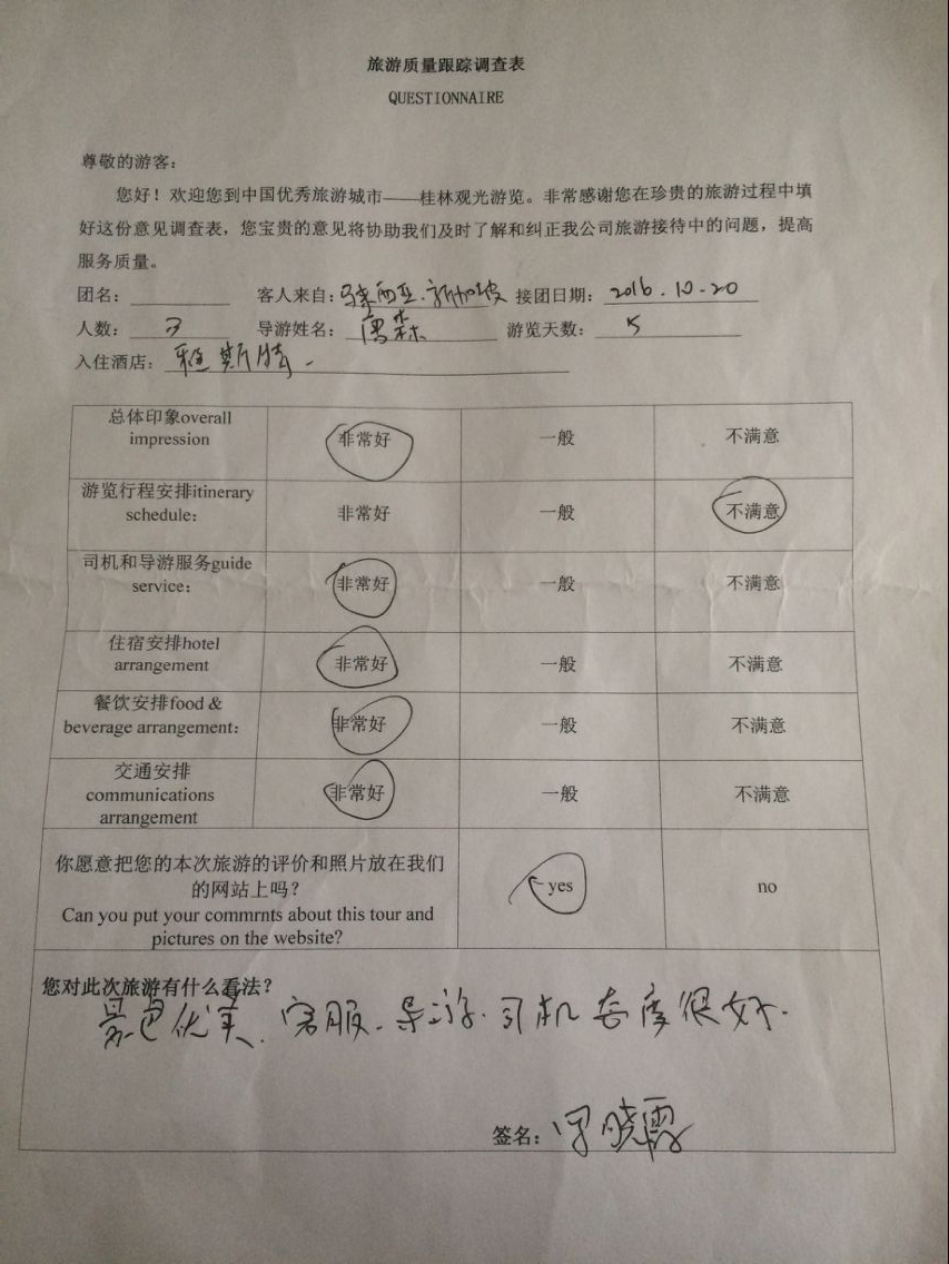 中餐后,结束行程。送机,结束愉快的桂林之旅。