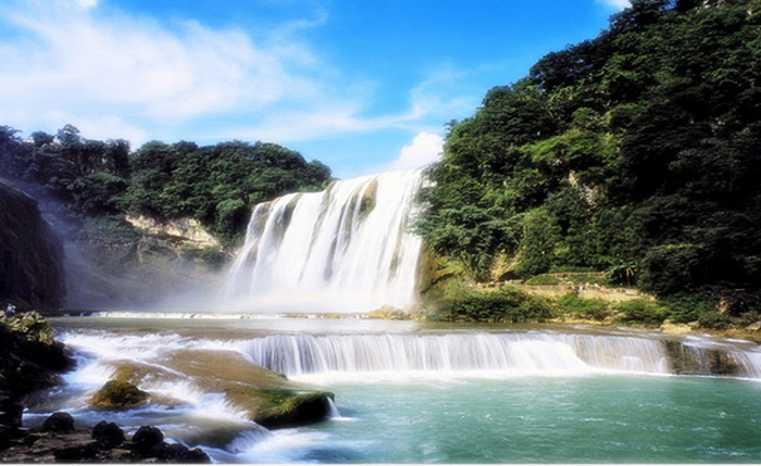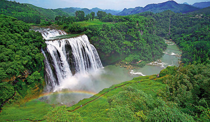 黄果树瀑布,犹如一条奔腾的巨龙,横亘千古,包罗万象,涤污纳垢,揽九天之光华,洒四海之春雨;恰似一部厚重的史诗,记录人类沧桑的悲欢离合,荣辱兴衰;宛如一位圣明的智者,视沉浮为寻常,踏坎坷成奇迹;更像一位顽强的勇士,恪守誓言,沿着亘古不变的河床,特立独行,勇往直前,一路高歌,一路驰骋。