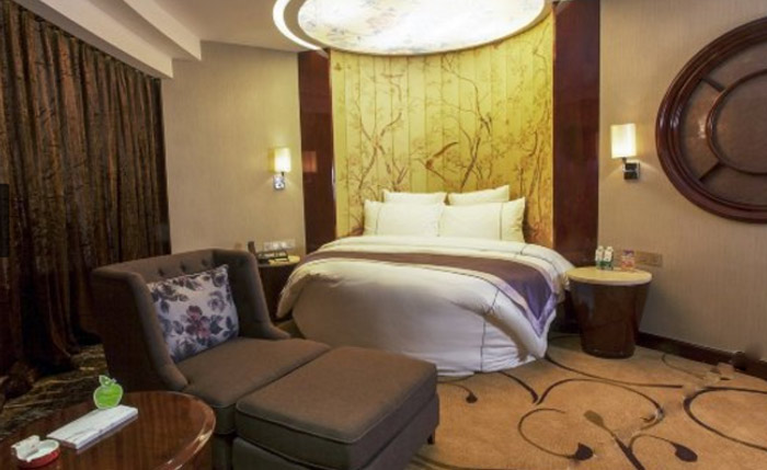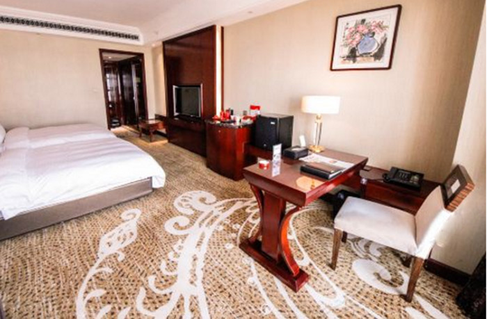 酒店外观宏伟大气,整体设计奢华典雅;大堂宽阔明亮,装点以美轮美奂的水晶灯饰、艺术气息浓郁的吊顶。客房布置舒适齐整、将中式古典元素与现代居住理念相融合,独具韵味;设有多款房型,房内配置中央空调、国内国际长途电话、迷你吧、小冰箱、24小时热水、独立卫浴等设施,满足宾客品质生活所需。