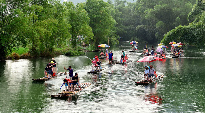 如果把漓江比成“大家闺秀”,那么遇龙河则是让人怦然心动的“小家碧玉”。“遇龙河是世界上人类共有的自然遗产。”遇龙河两岸一派田园风光,赏心悦目。天平绿洲、情侣相拥、平湖倒影、夏棠胜境、双流古渡、梦幻河谷等等,让人仿佛进入了天人合一的诗意境界,返朴归真的自由天地。