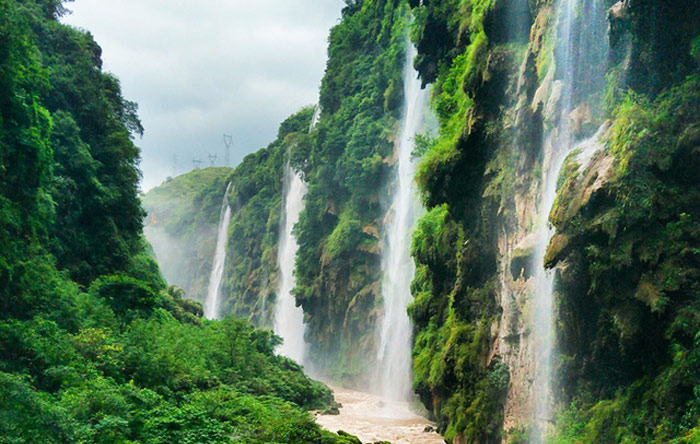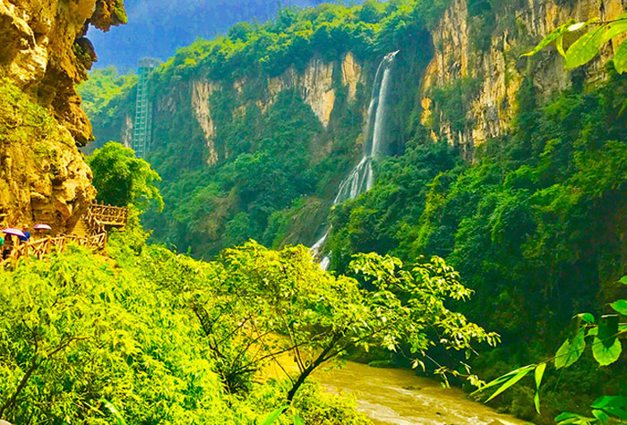 谷两壁孕育出规模宏大,气势壮观,错落有致的钙化岩,构成了特有的岩石瀑布。