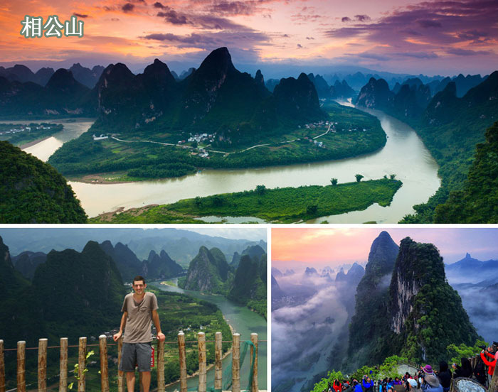 游览【相公山日落(游览时间约60分钟)举目远眺,群峰排列有序,清澈的漓江蜿蜒流淌在群山怀抱中。这里的光影、云海、日出、彩霞吸引了无数的摄影家和摄影爱好者,桂林摄影家在此拍摄的作品曾获第10届国际影展铜奖。碰上好天气在相公山上举目远望,就能感受到“桂林山水甲天下,阳朔堪称甲桂林。群峰倒影山浮水,无水无山不入神”的意境。