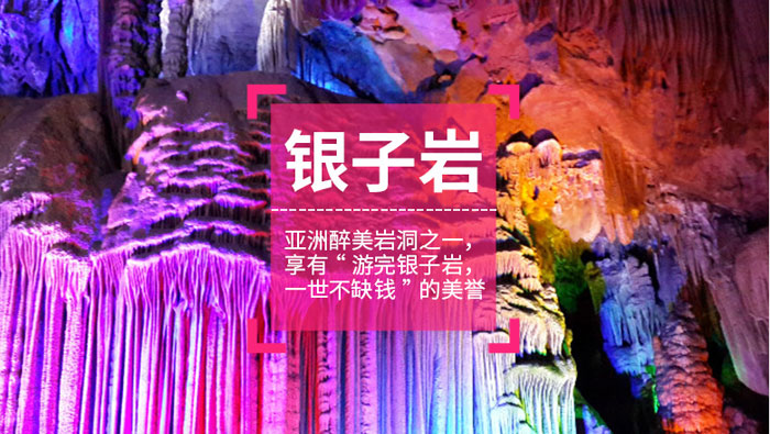 参观【银子岩】(游览时间约60分钟),银子岩溶洞是典型的喀斯特地貌,贯穿十二座山峰,属层楼式溶洞,洞内汇集了不同地质年代发育生长的钟乳石,有桂林最美岩洞之称,洞内汇集了高达数十米,雄、奇、幽、美,像银子似钻石的钟乳石。洞内奇特的自然景观堪称鬼斧神工,色彩缤纷而且形象各异的钟乳石石柱、石塔、石幔、石瀑,构成了世界岩溶艺术万般奇景,令人流连忘返,美国前总统克林顿也是它的粉丝, 98年访华时为了游览银子岩专门推迟了去香港的班机!