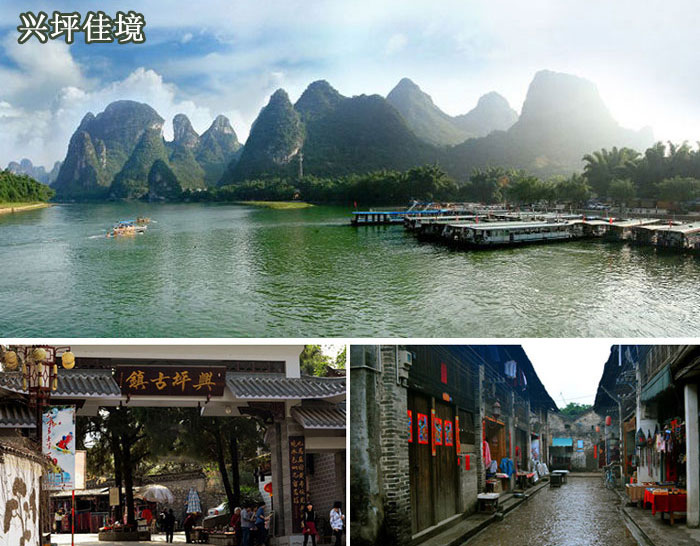游览【兴坪古镇】(游览时间约40分钟)早在三国吴甘露元年(公元265年),即已为熙平县治,管辖阳朔一带,隋代开皇十年(公元590年)废熙平县改置阳朔县,兴坪遂为阳朔县所辖。有明代建筑腾蛟庵1998年7月,时任美国总统克林顿浏览漓江并到兴坪渔村访问,更激起了不少中外游客慕名前往,追寻总统足迹。