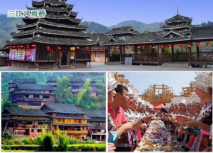 早餐后约定时间酒店出发,游览三江鼓楼(游览时间约30分钟)位于广西三江侗族自治县月亮街,于2002年11月由当地著名的侗族民间工匠杨似玉为首的民间楼桥师傅队伍携手建造而成,集文化、观赏、旅游等多项功能于一体。三江鼓楼高42.6米,共有60根柱头着地,占地面积600平方米。鼓楼共有27层瓦檐,除楼顶两层外,其余25层瓦面等距收分,层层紧缩,使楼面呈金字塔形,显得端庄平稳。每层檐角轻盈起翘,精巧的雕饰以及鲜艳的檐板彩绘,与庞大、粗犷的楼身形成鲜明对比。楼内四根杉木大柱直径都超过70厘米,树龄均在百年以上,这在鼓楼建筑史上是唯一的。登上鼓楼的观礼台,三江全景尽收眼底。 鼓楼是侗族村寨的标志和灵魂。三江鼓楼是侗乡第一鼓楼,被誉为“世界第一鼓楼”,是中国国家4A景区中国三江大侗寨景区的景点,同景区内景点还有三江风雨桥,中国侗城,三江奇石城,福禄寺等。后返回桂林。